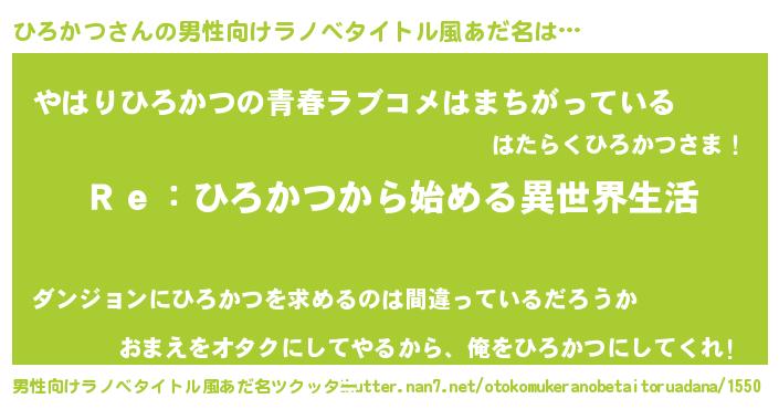 | ヒーロー風カッコイイあだ名 | 『究極戦士ヒロカツ』『銀牙騎士ヒロ』 |