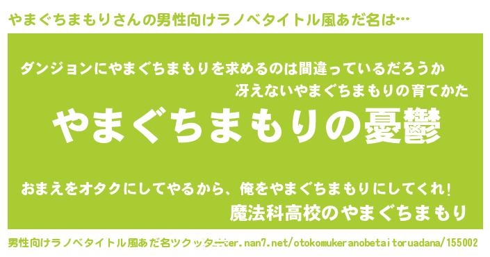 | 女子向けラノベタイトル風あだ名 | 『(仮)やまぐちまもりのやんごとなき事情』 |