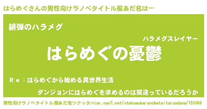 | 胡散臭い通販商品みたいなあだ名 | 『モテモテ間違いなし霊験あらたかなお札…その名も「はらめぐ」』 |