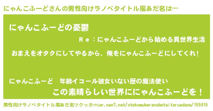| 欧米人風あだ名 | 『ダニエルにゃんこふーど』 |