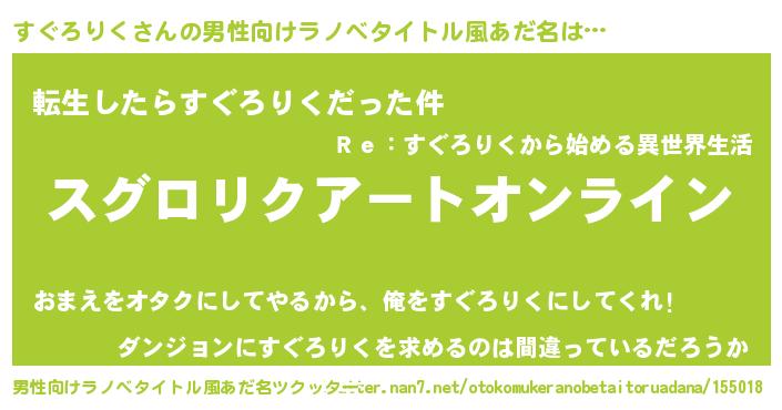 | 意味不明あだ名 | 『ペロリンすぐろりく』『自称すぐろりく』 |