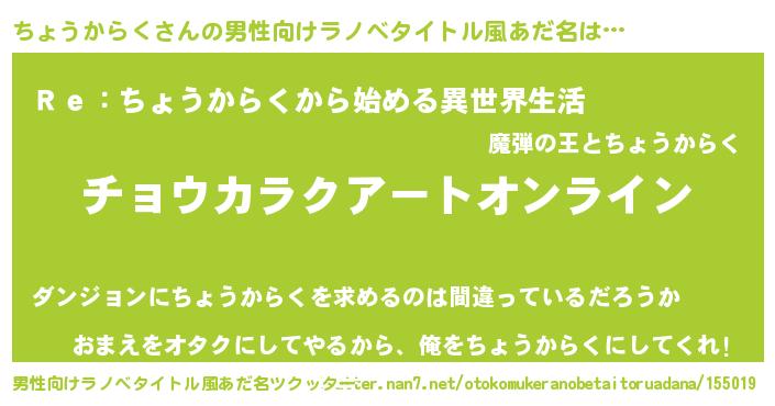 | 女子向けラノベタイトル風あだ名 | 『ちょうからく姫と円卓の騎士』 |