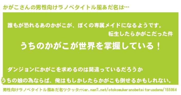 | 女子向けラノベタイトル風あだ名 | 『男装かがこの憂鬱な任務』 |