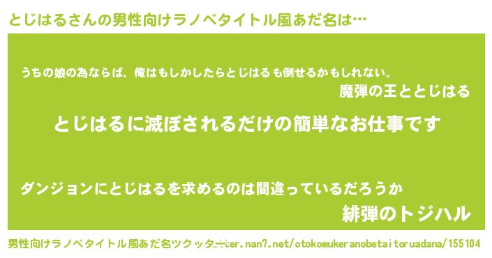 | 意味不明あだ名 | 『とじはるフォーエバー』『自称とじはる』 |