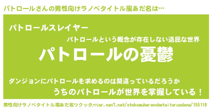 | 胡散臭い通販商品みたいなあだ名 | 『必ず成功する霊験あらたかなお札…その名も「パトロール」』 |
