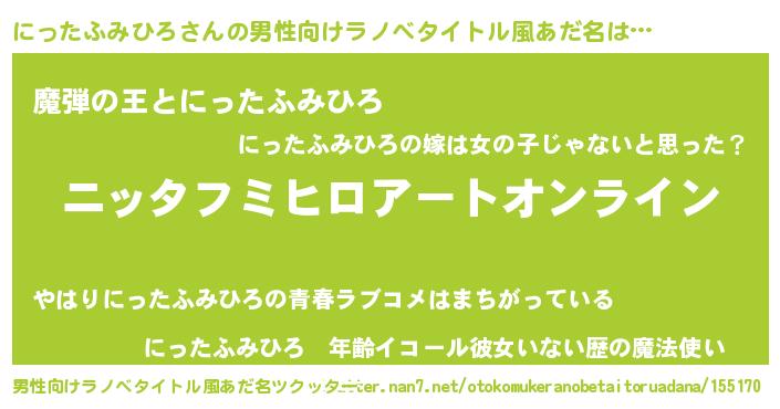 | 女子向けラノベタイトル風あだ名 | 『誰かこのにったふみひろを説明してください! ~契約から始まるウェディング~』 |
