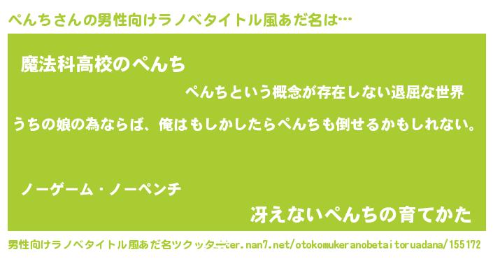 | 意味不明あだ名 | 『ぺんちフォーエバー』『自称ぺんち』 |