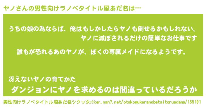 | 胡散臭い通販商品みたいなあだ名 | 『前代未聞の健康食品…その名も「ヤノ」』 |