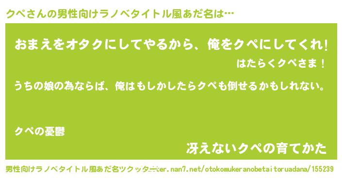 | 女子向けラノベタイトル風あだ名 | 『クペの婚約者』『クペ恋絵巻』 |