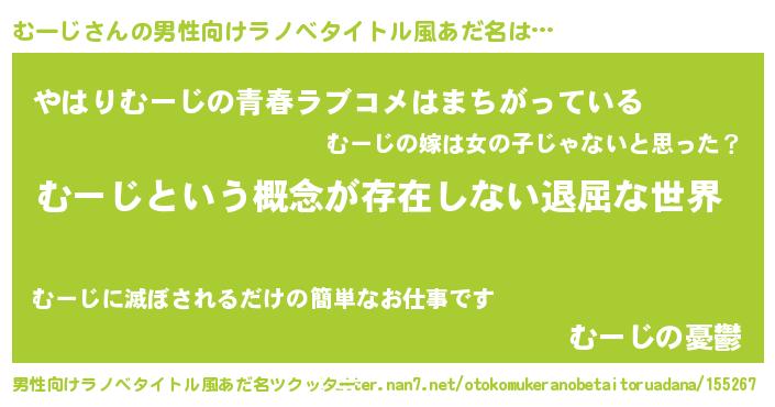 | 女子向けラノベタイトル風あだ名 | 『異世界で失敗しない100のむーじ』 |