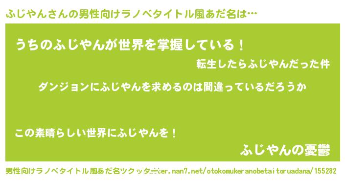 | 女子向けラノベタイトル風あだ名 | 『ふじやんの卵を拾いまして』 |