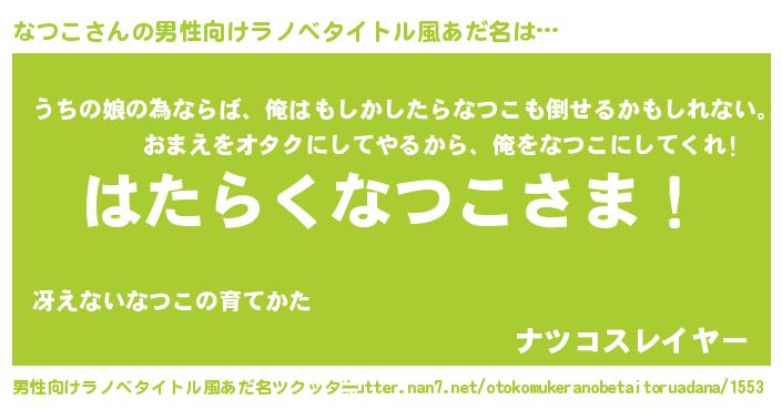 | 女子向けラノベタイトル風あだ名 | 『首の姫と首なしなつこ』『なつこ恋絵巻』 |