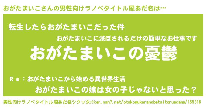 | 胡散臭い通販商品みたいなあだ名 | 『必ず成功するブレスレット…その名も「おがたまいこ」』 |