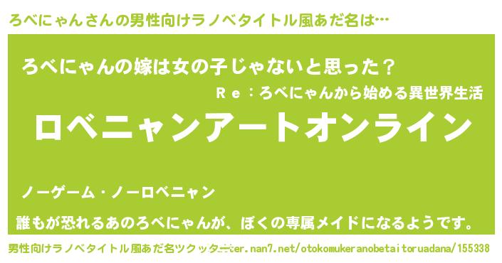 | 女子向けラノベタイトル風あだ名 | 『誰かこのろべにゃんを説明してください! ~契約から始まるウェディング~』 |