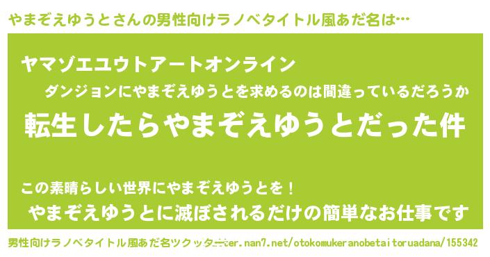 | 胡散臭い通販商品みたいなあだ名 | 『モテモテ間違いなし水晶球…その名も「やまぞえゆうと」』 |