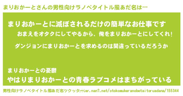 まりおかーとさんの男性向けラノベタイトル風あだ名をツクッター!