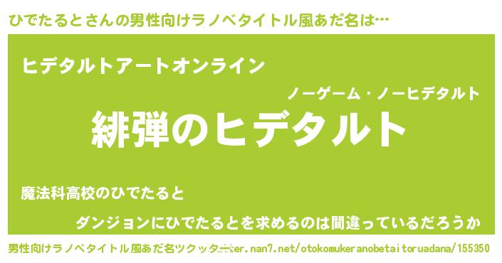 | 女子向けラノベタイトル風あだ名 | 『シンデレラひでたると家の靴箱館』 |
