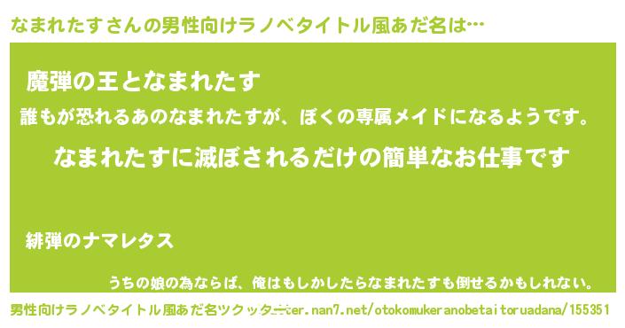 | 意味不明あだ名 | 『住所不定無職なまれたす(8歳)』 |