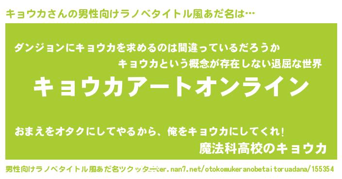 ヒーロー風カッコイイあだ名 | 『スーパーキョウカ』『黄金騎士キョ』 |