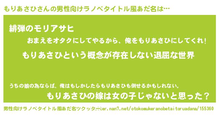 | 意味不明あだ名 | 『永久保存もりあさひ』 |