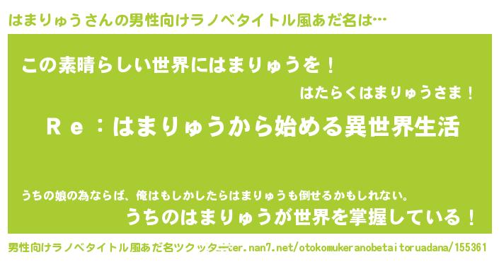 | 女子向けラノベタイトル風あだ名 | 『闇のはまりゅう』 |