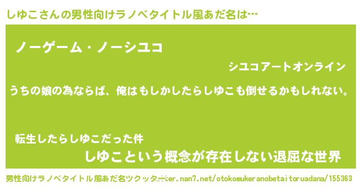 | 胡散臭い通販商品みたいなあだ名 | 『運命の人と巡り会える高級そうな絵画…その名も「しゆこ」』 |