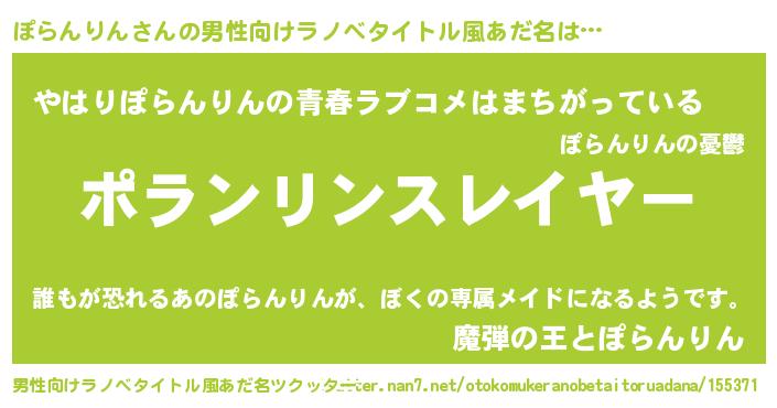 ぽらんりんさんの男性向けラノベタイトル風あだ名をツクッター!