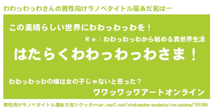 | 意味不明あだ名 | 『住所不定無職わわっわっわ(71歳)』 |