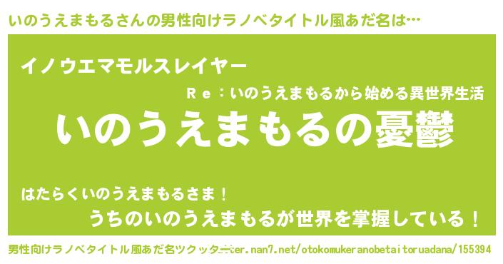 | 女子向けラノベタイトル風あだ名 | 『(仮)いのうえまもるのやんごとなき事情』 |