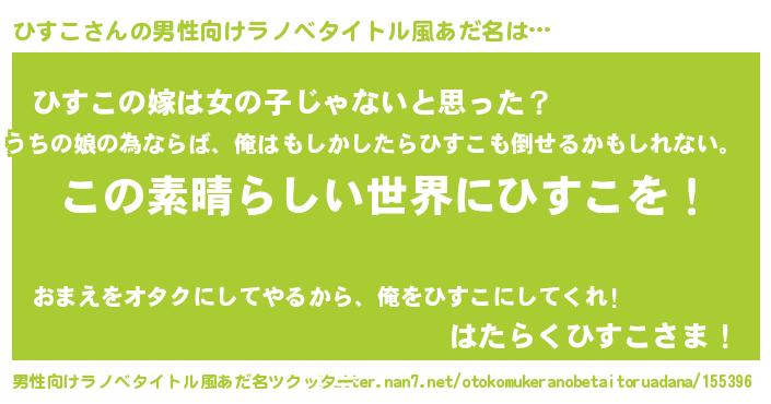 | 意味不明あだ名 | 『住所不定無職ひすこ(81歳)』 |