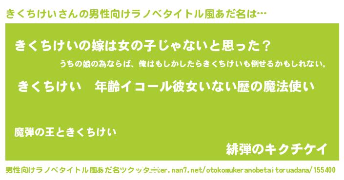 | ヒーロー風カッコイイあだ名 | 『幻影騎士キク』『仮面キクダー』 |