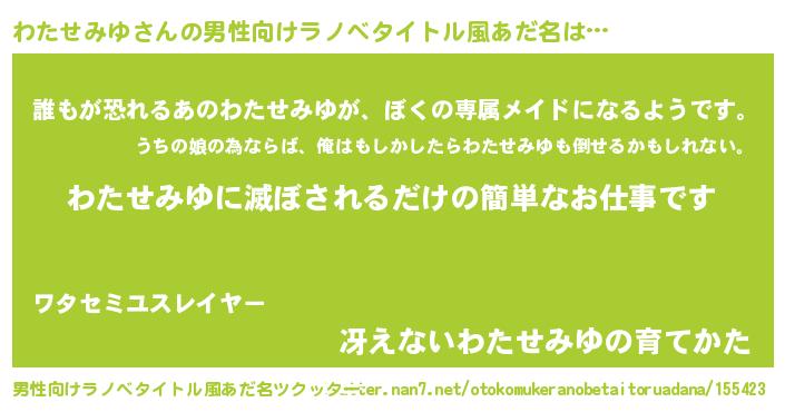 | 胡散臭い通販商品みたいなあだ名 | 『前代未聞の健康食品…その名も「わたせみゆ」』 |