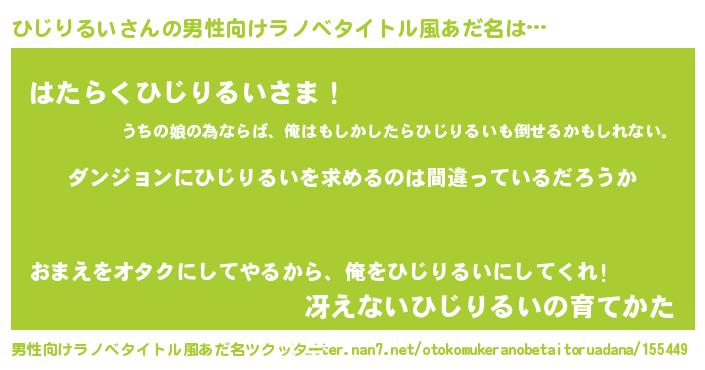 | 女子向けラノベタイトル風あだ名 | 『ひじりるいは平凡を望む』 |