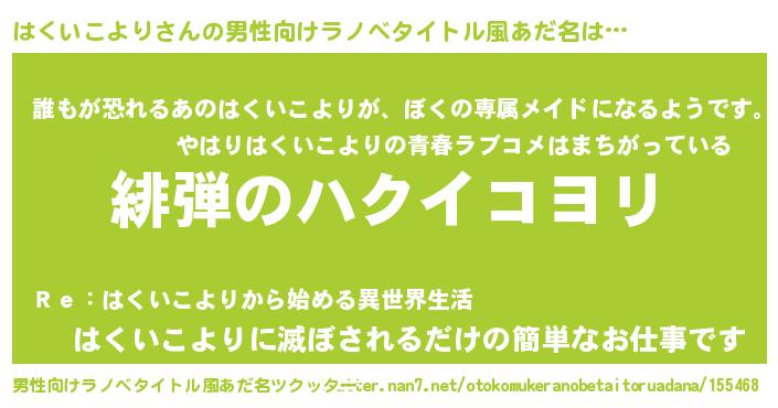 | ヘコむあだ名 | 『はくいこより(小並感)』『なまこ酢』 |