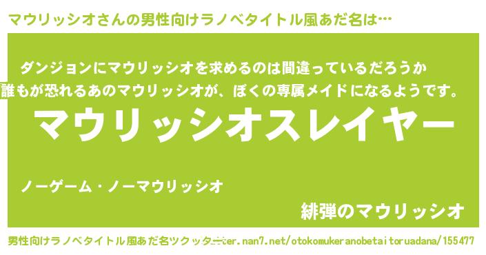 | ヒーロー風カッコイイあだ名 | 『魔戒騎士マウ』『ネオマウリッシオ』 |