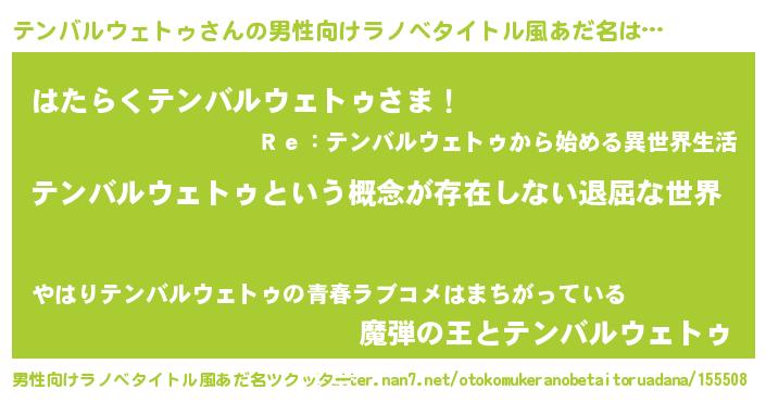 | ヘコむあだ名 | 『テンバルウェトゥ(爆)』『なまこ酢』 |