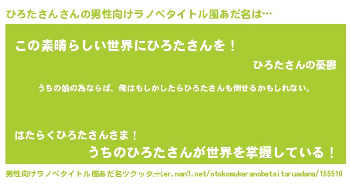 | 女子向けラノベタイトル風あだ名 | 『ひろたさん伯爵の花嫁』 |