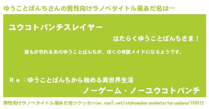 | 女子向けラノベタイトル風あだ名 | 『異世界でカフェゆうことぱんちを開店しました。』 |