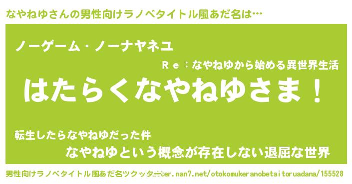 | ヒーロー風カッコイイあだ名 | 『正義の使者なやねゆ』『ネオナヤネユ』 |