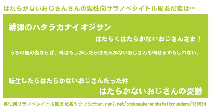 | ファンタジー風あだ名 | 『エターナルハタラカナイオジサンー』 |