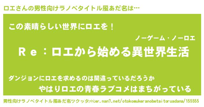 | 意味不明あだ名 | 『自称ロエ』『住所不定無職ロエ(43歳)』 |