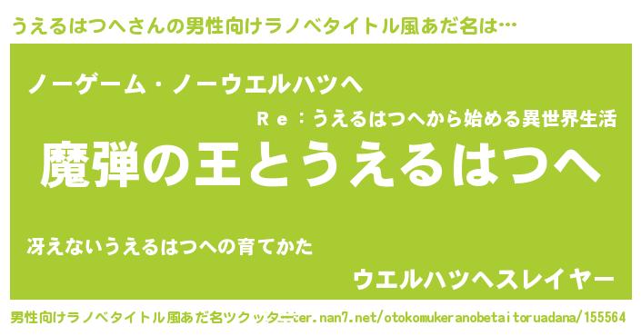 | 意味不明あだ名 | 『住所不定無職うえるはつへ(74歳)』 |