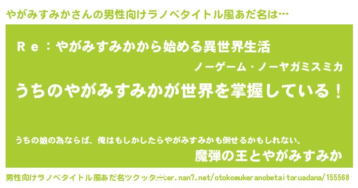 | 女子向けラノベタイトル風あだ名 | 『男装やがみすみかの憂鬱な任務』 |