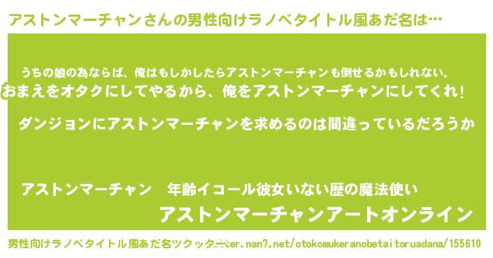 | ポケモン風あだ名 | 『ヒアストンマーチャン』『アストダネ』 |