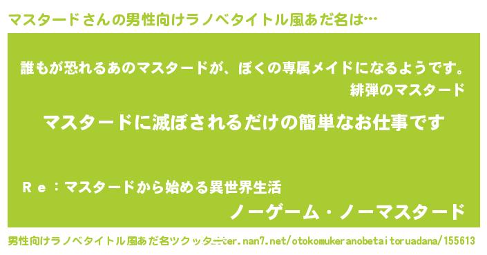 | 胡散臭い通販商品みたいなあだ名 | 『来世でも幸せになれる健康食品…その名も「マスタード」』 |