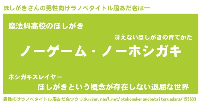 | 女子向けラノベタイトル風あだ名 | 『死神ほしがきの再婚』 |