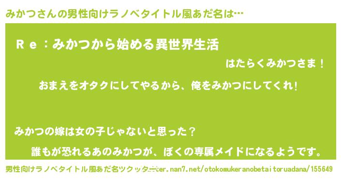 | 女子向けラノベタイトル風あだ名 | 『みかつ恋絵巻』『闇のみかつ』 |