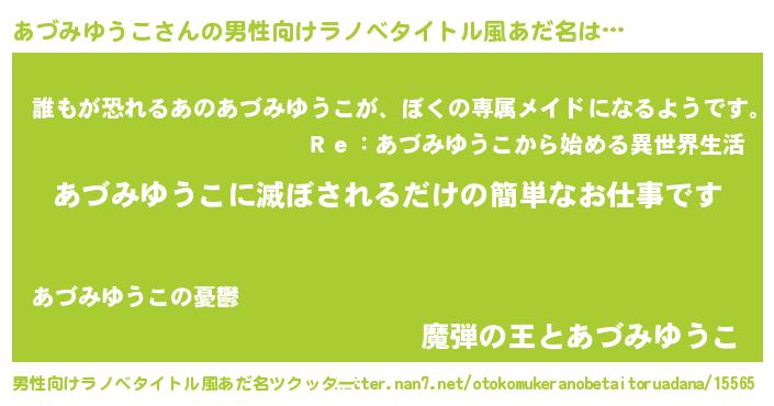 | 胡散臭い通販商品みたいなあだ名 | 『来世でも幸せになれる健康食品…その名も「あづみゆうこ」』 |
