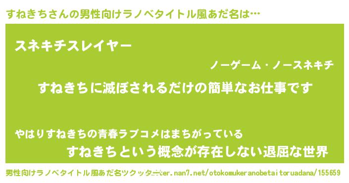 | ヒーロー風カッコイイあだ名 | 『ネオスネキチ』『正義の使者すねきち』 |