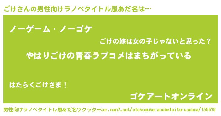 | 女子向けラノベタイトル風あだ名 | 『ごけの雑貨屋さん』『死神ごけの再婚』 |